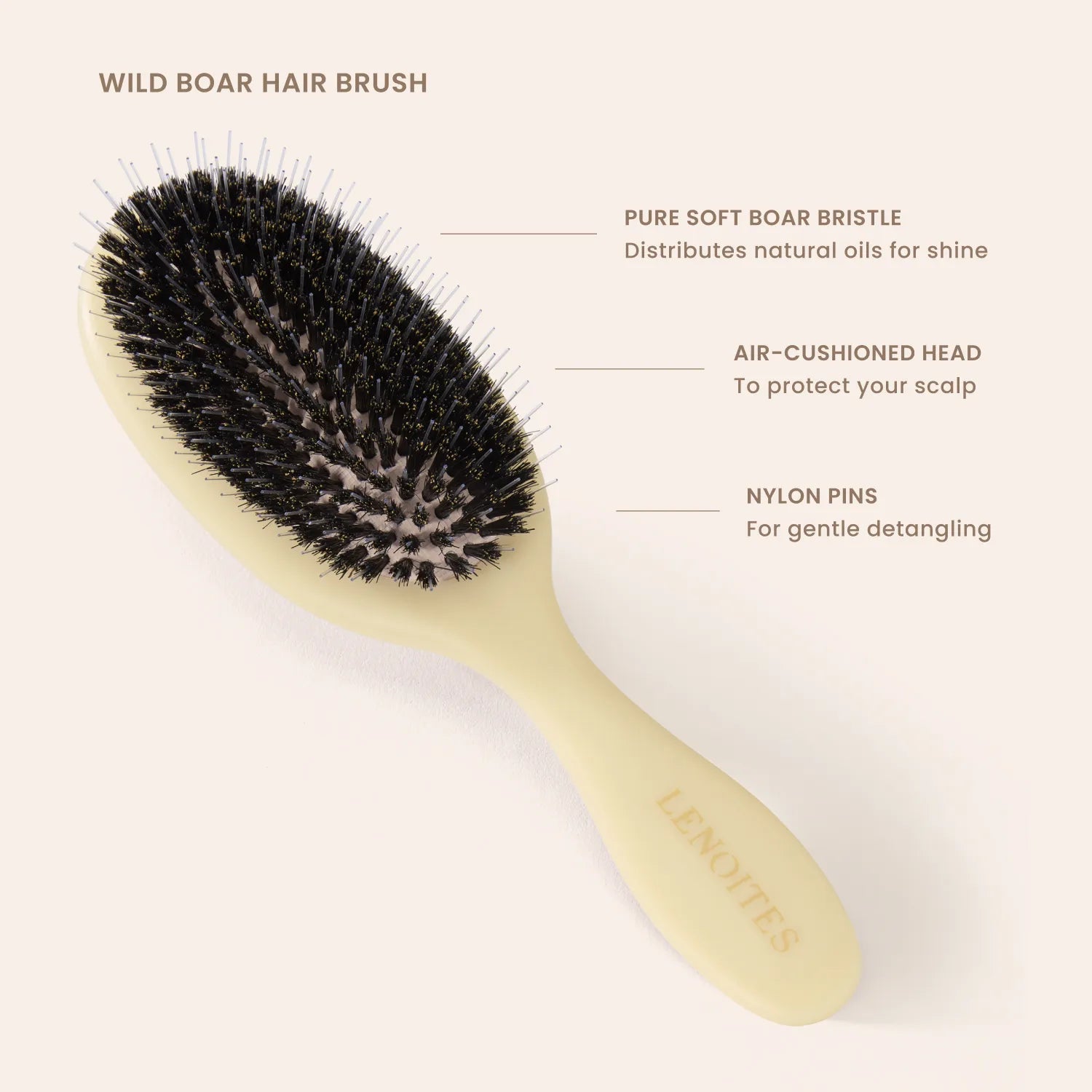Eine Wildschweinhaarbürste ist mehr als nur ein Styling-Tool. Sie entwirrt sanft, verteilt natürliche Öle und verleiht Ihrem Haar einen gesunden Glanz, der es von stumpf in strahlend verwandelt. Perfekt für alle Haartypen, ist sie die Geheimwaffe für glattes, krauses Haar, das sich genauso gut anfühlt, wie es aussieht. Gönnen Sie Ihrem Haar die Pflege, die es verdient, und verschönern Sie Ihren Alltag.