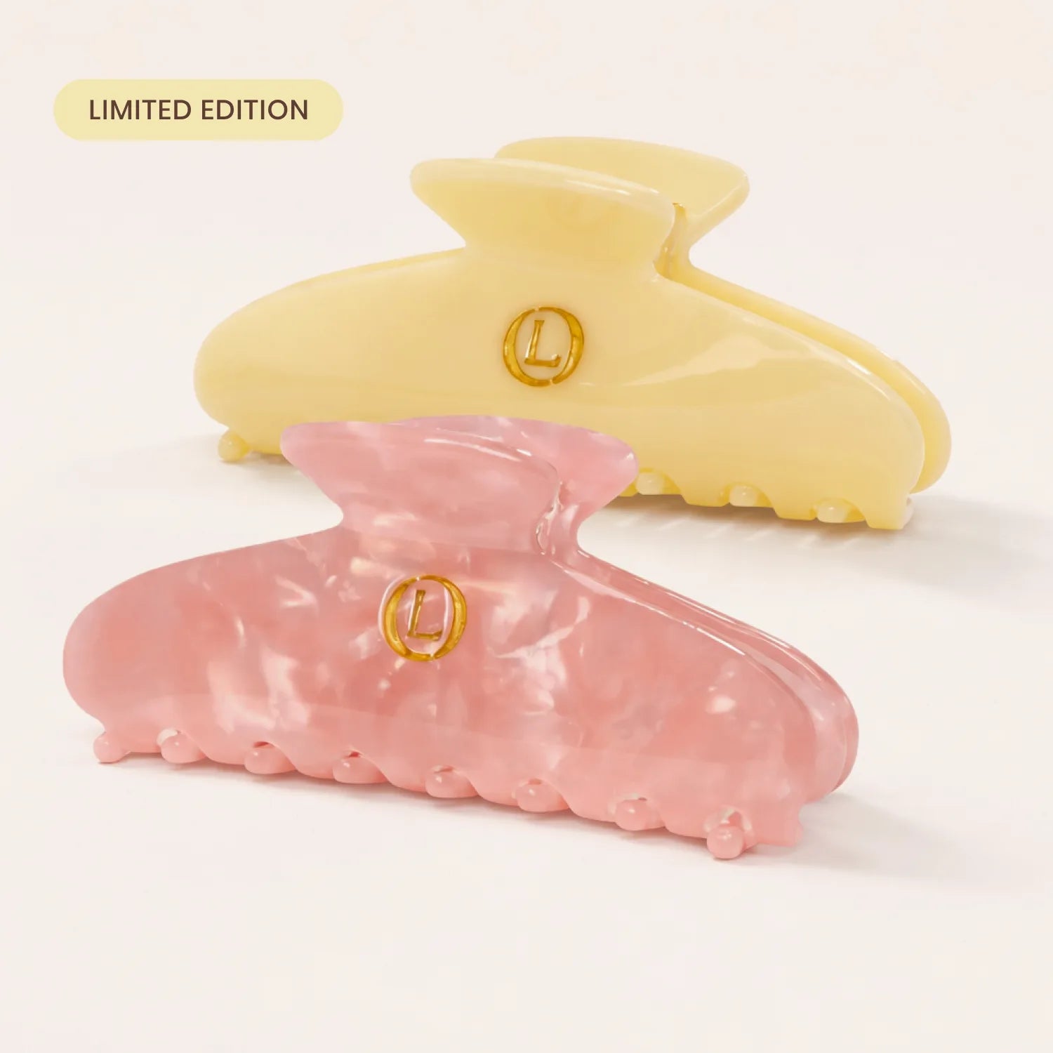 Halten Sie Ihr Haar an Ort und Stelle, ohne zu ziehen, zu verrutschen oder zu beschweren, mit unserem Lenoites Claw Clip Duo Set. Dieses Set enthält zwei elegante Haarspangen in Butter Yellow und Rosé Pink, die für langanhaltenden Komfort, sanften Halt und ein luxuriöses Finish sorgen. Gefertigt aus hochwertigem Zelluloseacetat, behalten sie ihre Form und ihren Glanz über die Zeit, sodass Ihr Haar den ganzen Tag stilvoll und sicher bleibt.
