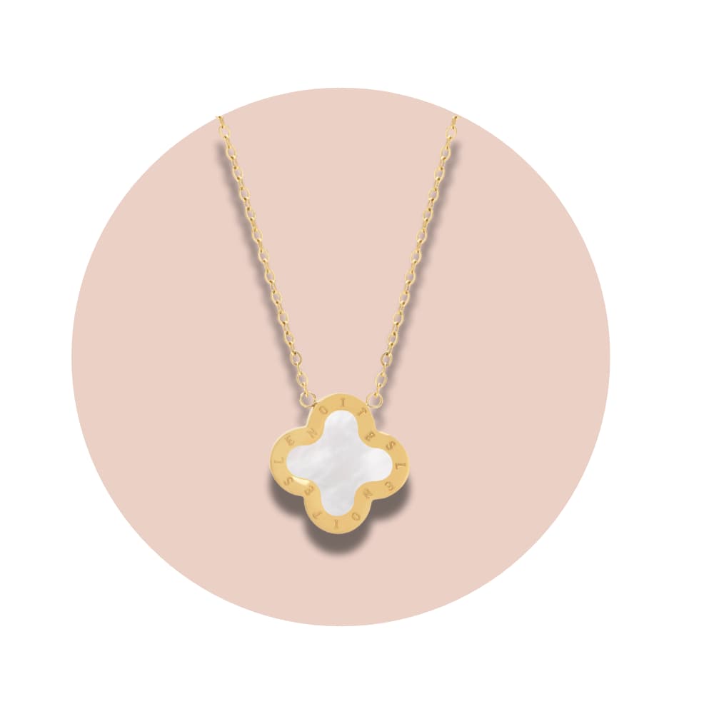 Halskette mit einem Motiv in Form eines vierblättrigen Kleeblatts, bei dem die vier Blätter zusammen Glauben, Hoffnung, Liebe und Glück symbolisieren. Das klassische und doch luxuriöse Design macht diese Halskette zu einer perfekten Wahl sowohl für den Alltag als auch für festliche Anlässe. Unabhängig vom Anlass verleiht diese Halskette Ihrem Look mit Sicherheit Eleganz und wertet ihn auf.
