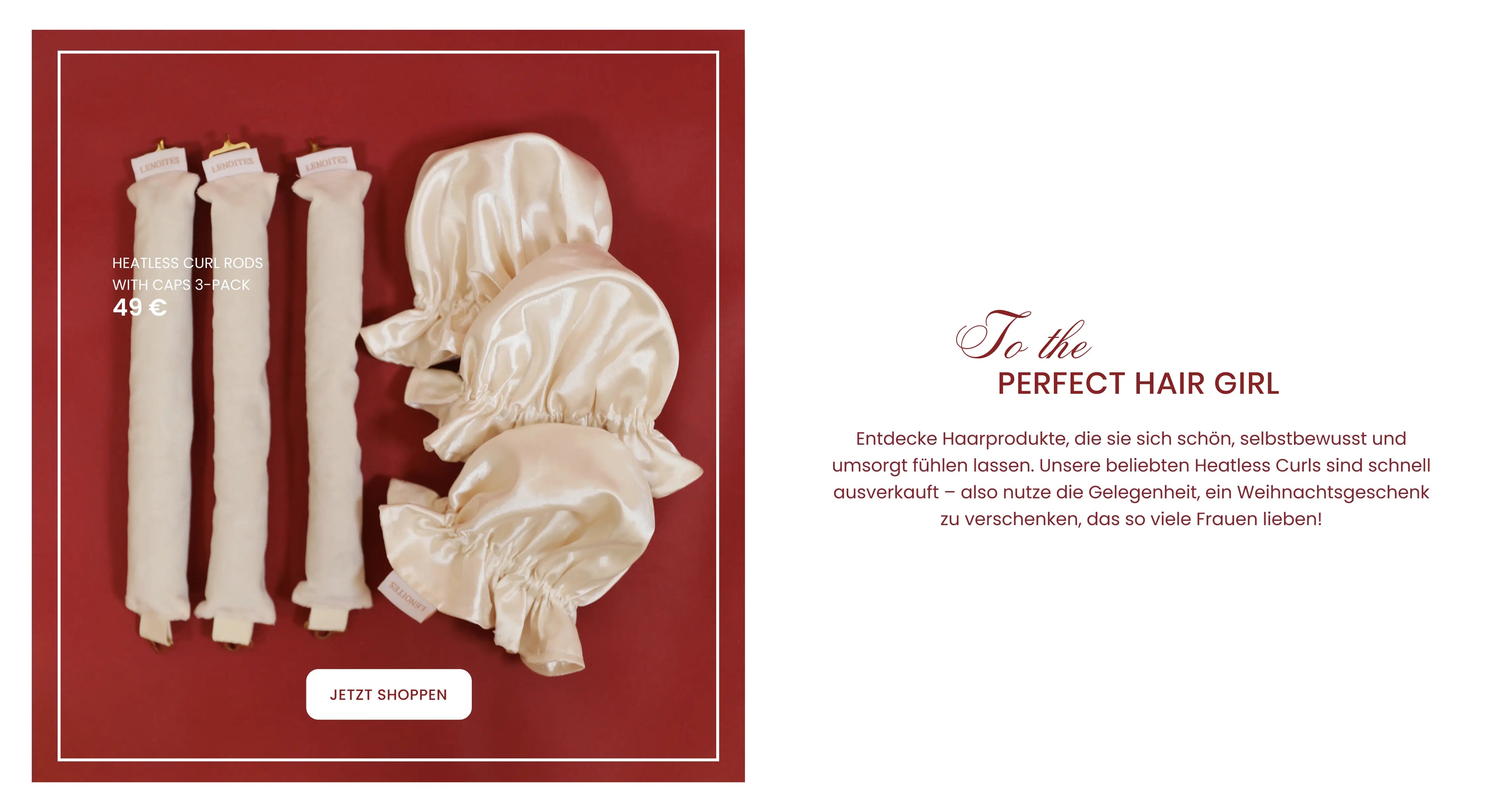 Entdecke Haarprodukte, die sie sich schön, selbstbewusst und umsorgt fühlen lassen. Unsere beliebten Heatless Curls sind schnell ausverkauft – also nutze die Gelegenheit, ein Weihnachtsgeschenk zu verschenken, das so viele Frauen lieben!