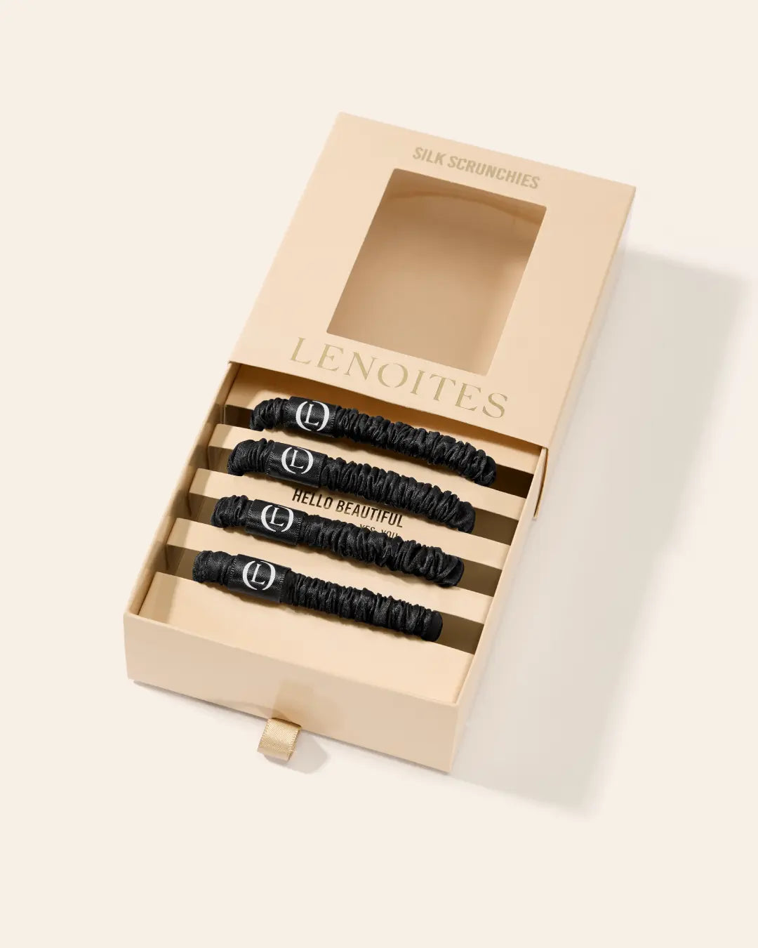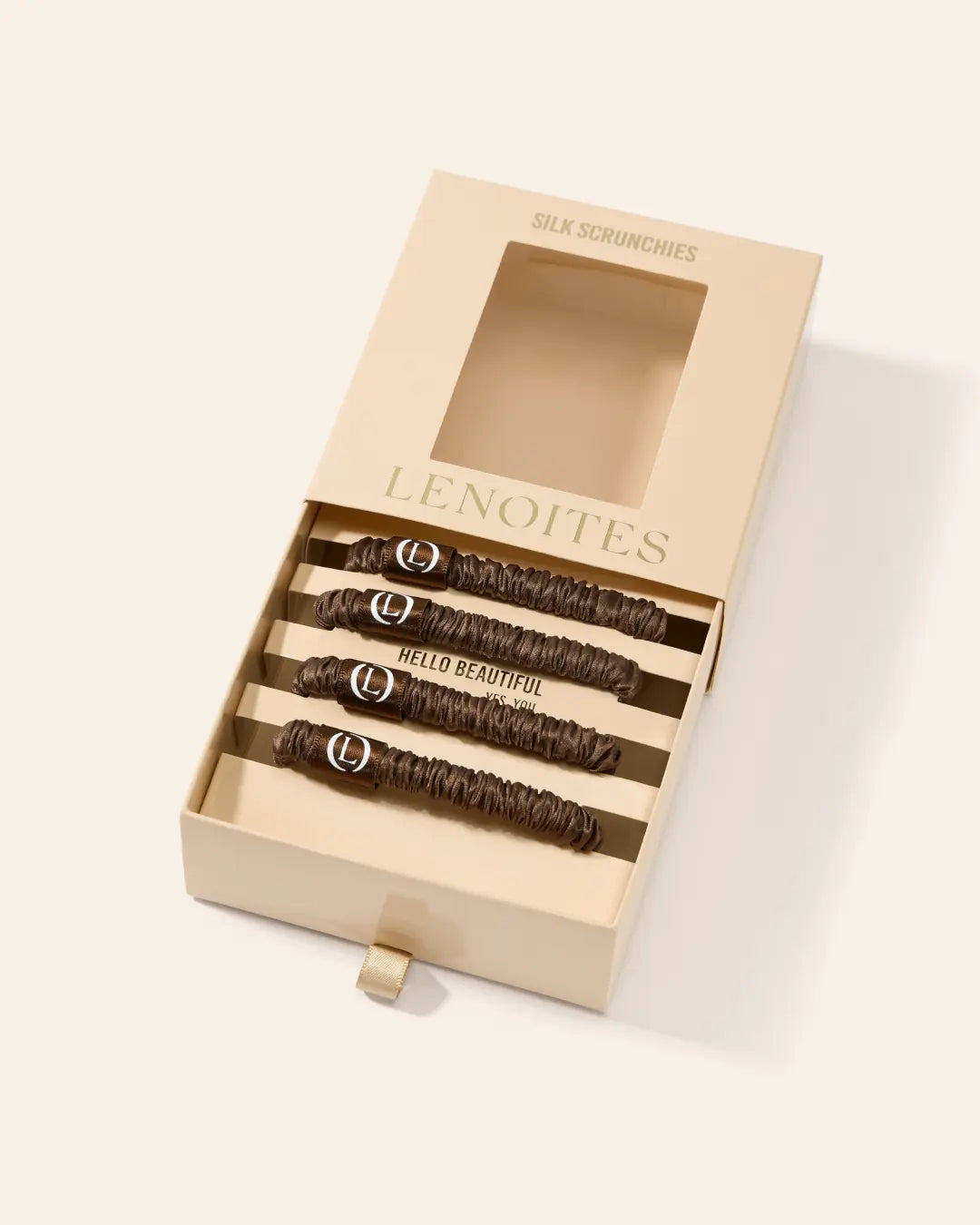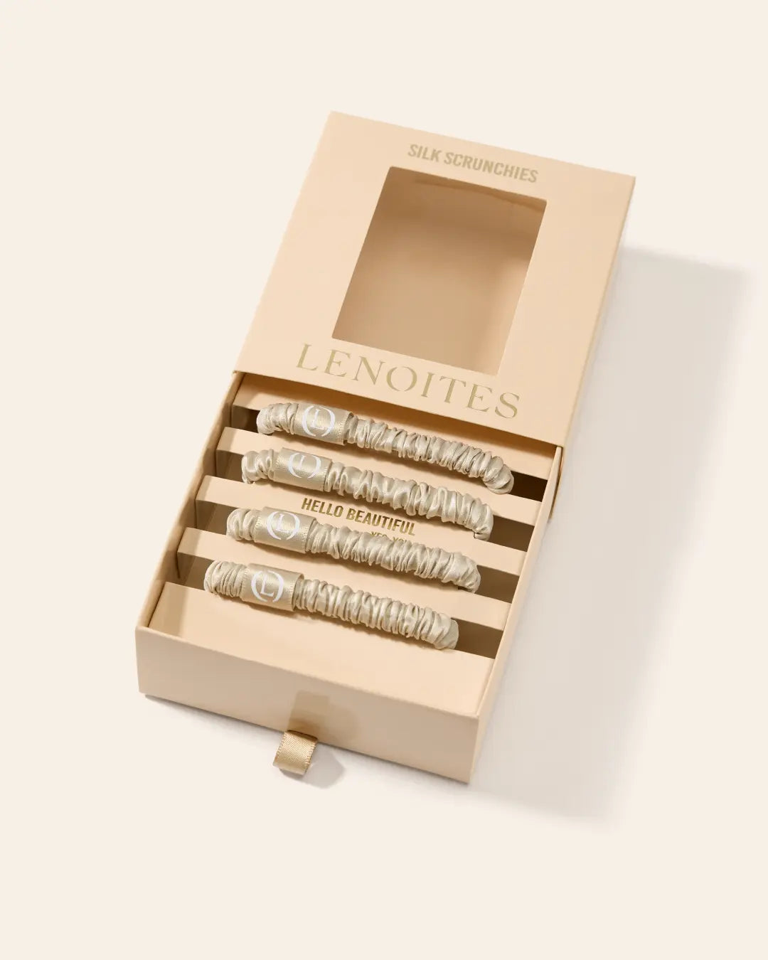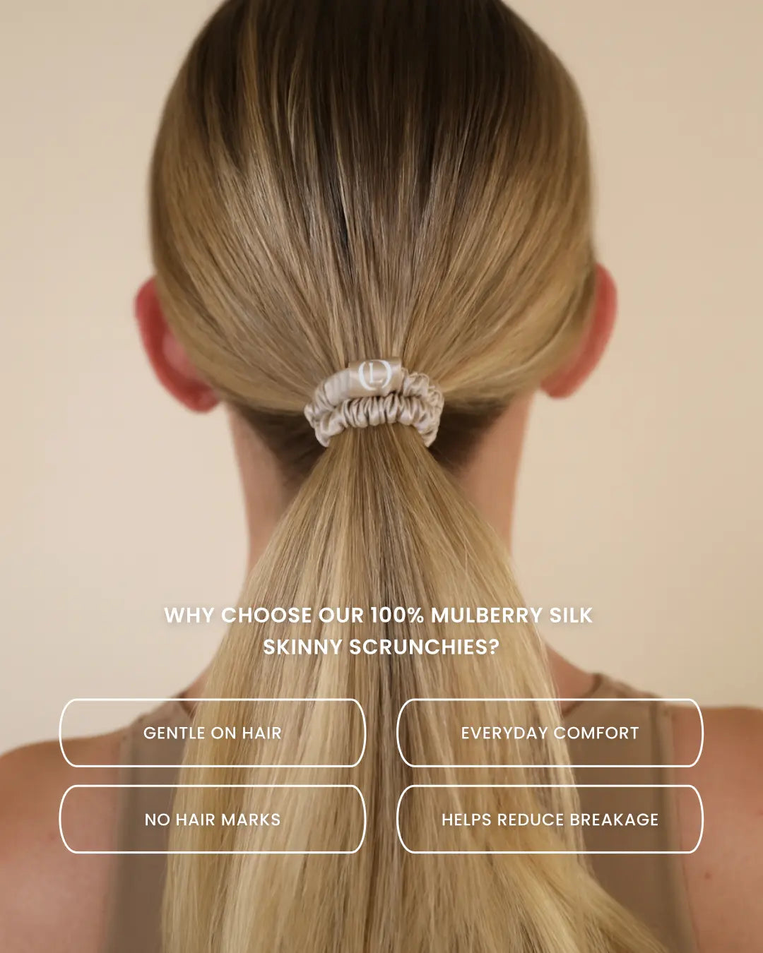Beautiful and timeless scrunchies made of 100% mulberry silk with a weight of 22 momme, which is a measure of the quality and thickness of the silk. A piece of jewelry for the hair without rubbing the outer layer, which promotes healthy hair. Prevents marks and imprints during updos.
