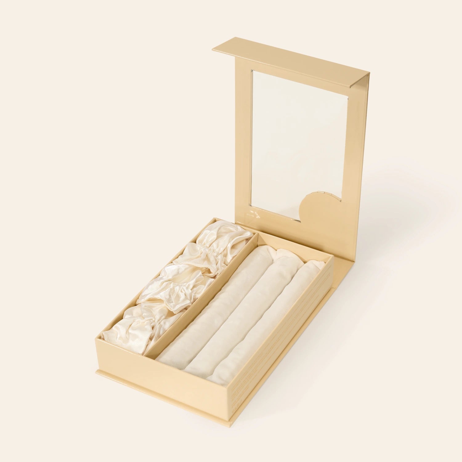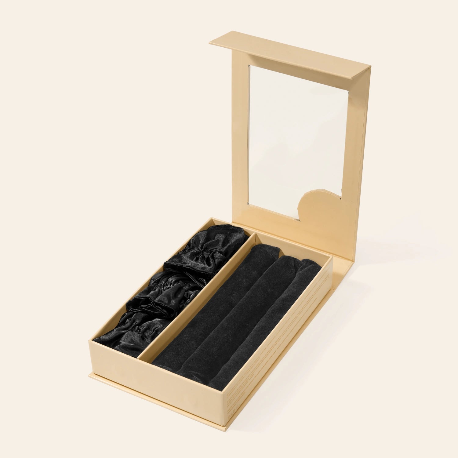 Create beautiful curls without heat with our Heatless Curl Rods with Caps. Each section of hair is gently wrapped around the soft rods and covered with a matching satin cap that both holds the shape and protects the hair.