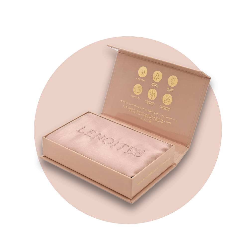 Experience real beauty sleep on Lenoites® luxurious pillowcase. Lenoites® uses 100% pure mulberry silk and the fabric is created from shiny, long silk threads of sustainable quality. The silk fabric carries 22-momme, which is the measurement of the thickness of the fabric. Of course, all our pillowcases are free from toxic dyes and harmful chemicals and carry OEKO-TEX® certification.