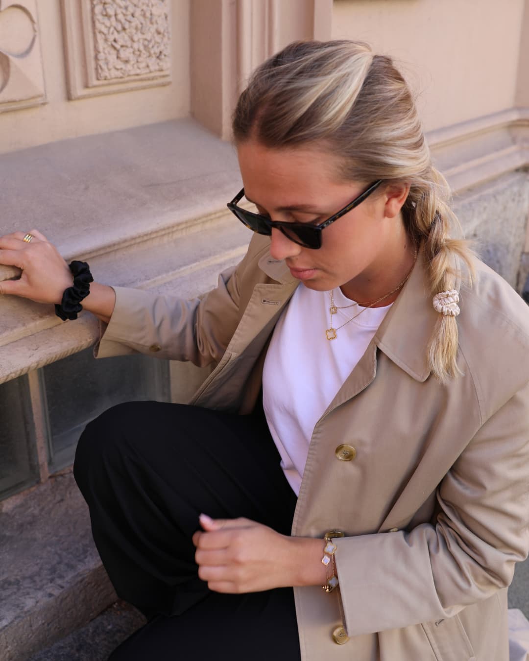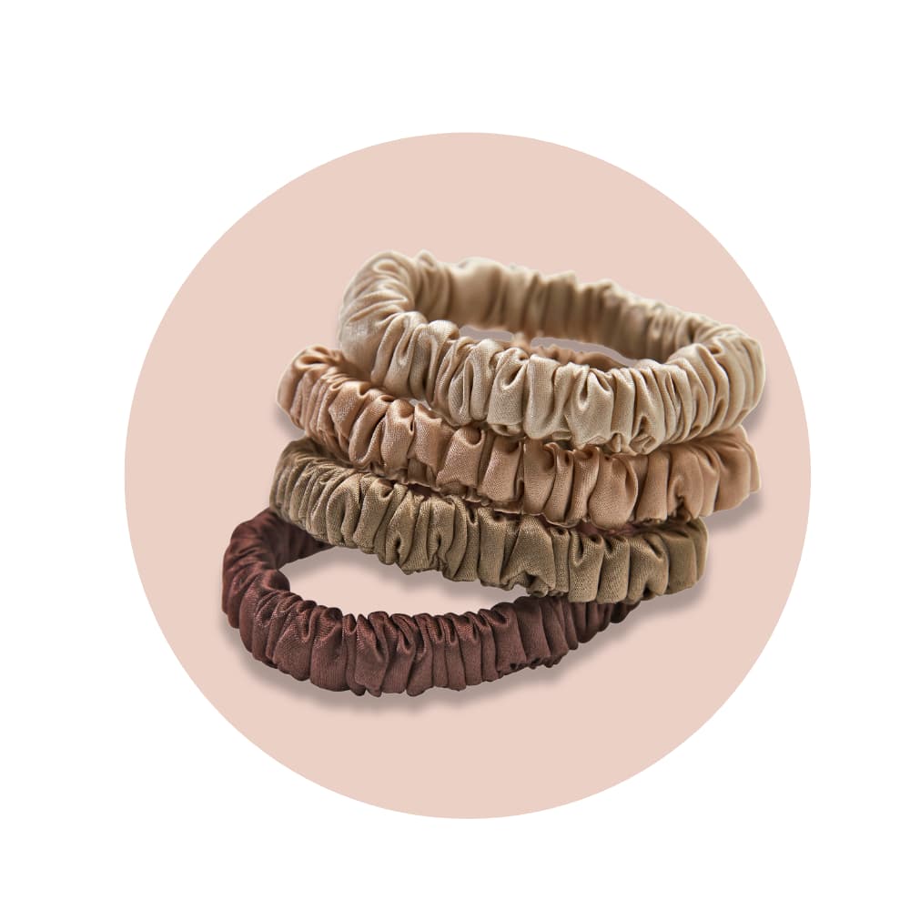 Beautiful and timeless scrunchies made of 100% mulberry silk with a weight of 22 momme, which is a measure of the quality and thickness of the silk. A piece of jewelry for the hair without rubbing the outer layer, which promotes healthy hair. Prevents marks and imprints during updos.
