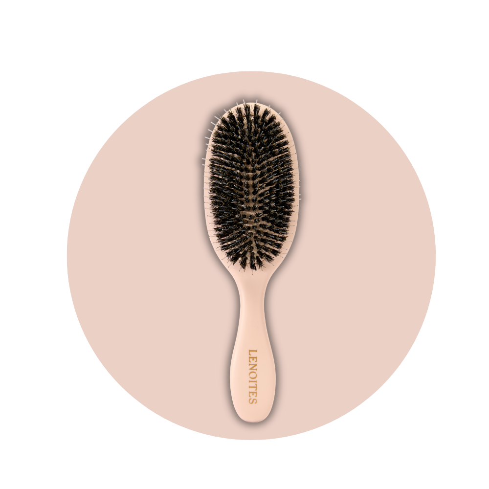 Sanfte, ovale Haarbürste mit einer Kombination aus Wildschweinborsten und Nylonborsten, die das Entwirren der Haare für optimale Ergebnisse erleichtert. Die Haarbürste stimuliert die Kopfhaut und fördert die Durchblutung. Sie verteilt die natürlichen Öle von der Kopfhaut bis in die Spitzen, was für weniger Frizz und glänzendes, gesundes Haar sorgt. Das Luftkissen passt sich der Kopfform an und dank ihrer praktischen Größe passt sie problemlos in eine Tasche und ist ideal für unterwegs. Mit Reinigungswerkzeug im Lieferumfang enthalten.